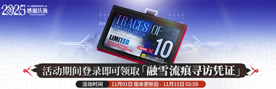 与此同时,游戏还推出了“感谢庆典”主题签到活动。连续登录可逐步领取包括资深干员技巧集、圣境材料、至纯原石在内的多种实用道具。每日签到还将额外赠送合成玉、龙门币等常规培养资源,助力玩家平稳过渡版本更新。