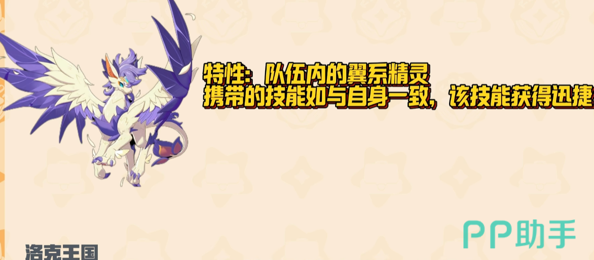 翼王的特性是翼王的强大能力之一,当队伍内的翼系精灵携带的技能和自身一致,这个技能获得迅捷,迅捷的效果是可以让精灵在切换上场的时候自动释放该技能,翼王的专属技能是释放所有携带迅捷的技能,也就是说翼王可以在上场的时候直接一次性打出自己所携带的4个技能,打出非常爆炸的伤害,翼王的工具人选择携带锤头鹳和号儿鱼们可以有效的提升翼王入场时的伤害。