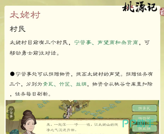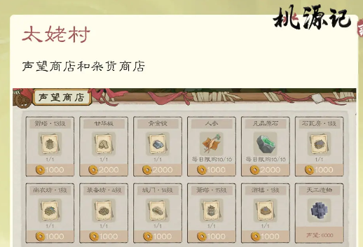 以上是为大家介绍的就是桃源记2太姥村,这里的任务每天都会刷新,而除了上面的这些任务之外,这里还有声望商店,还有很多的材料。玩家如果喜欢这个玩法,就可以一起去了解一下,选择一个合适的体验方式。