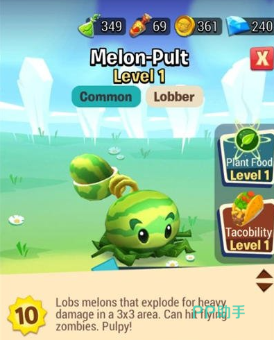 西瓜射手的核心优势在于其范围攻击能力。每次投掷出的西瓜在命中目标后,会引发一次3×3区域的爆炸伤害。无论是成群结队的僵尸还是单独前行的敌人,都能被有效覆盖,清场效率极高。尤其在面对密集推进的尸潮时,西瓜射手往往能一击扭转战局。更值得一提的是,该植物的阳光消耗仅为10点,在资源紧张的前期阶段,这样的低门槛让玩家可以快速部署,抢占先机。
