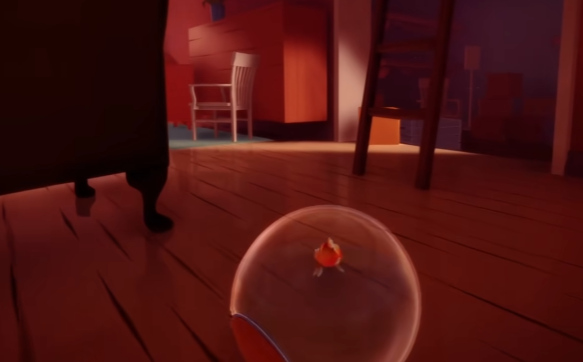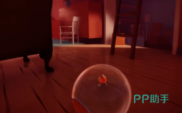 第二关设定于一处布满杂物的阁楼空间。玩家需识别可通行路线,寻找带有软质缓冲物的下落点进行安全降落。若地面散落有鱼食,记得让金鱼及时摄取补充能量。接着可通过推动梯子制造斜坡,打通前往阁楼外的通道。离开阁楼后需稍作回退,贴近墙壁缓慢下行。由于球形鱼缸具有明显惯性,下降过程中极易失控滑出,因此应在每次移动前等待球体完全稳定再继续操作。落地后鱼缸会破裂,金鱼随之落入泳池并进入地下水道系统。在管道内前行时会遇到栅栏阻隔,此时需精准按下跳跃键使金鱼跃过障碍,继续推进流程。