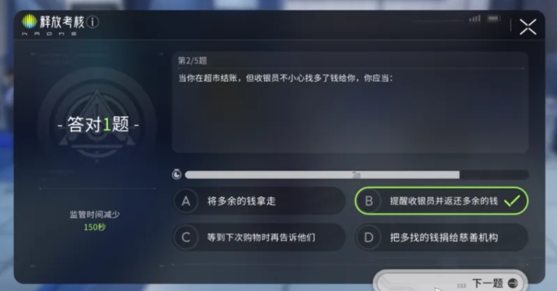 被捕后,玩家将进入“认知矫正程序”:角色被拘押至封闭审讯空间,处于强制眩晕状态且无法组队。释放需完成法规考核——题目涵盖《天月市公共秩序管理条例》《月灵共生伦理守则》等设定内文本。该机制摒弃了传统死亡回档设计,转而以知识验证替代惩罚重置,既强化玩家对世界观规则的理解,也使违规成本具象化、可感知,有效引导合规行为习惯的形成。