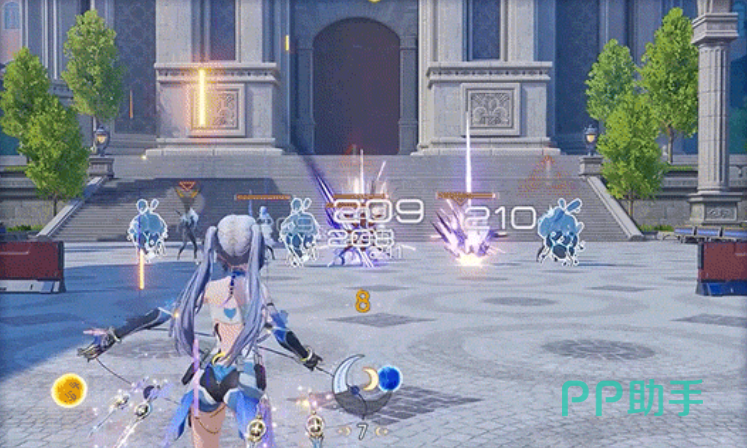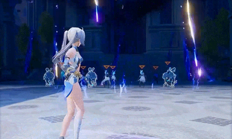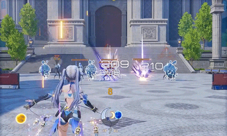 支援技“星骸锐雨”召唤多段落点式动能AOE伤害,释放期间角色将沿直线缓步前移,形成持续压制区域;爆发技“塑旺之期”需在常规形态下发动,且当前“月刻值”达到阈值方可激活,使用后清空全部月刻值,立即转入成长形态。