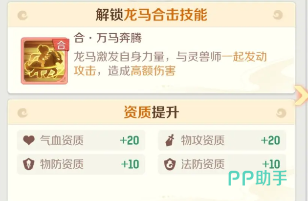 在必备技能选择上,“高级物爆”是龙马的核心支撑,因其天赋高度依赖暴击来触发额外行动机会,高暴击率不仅能提升基础输出,更能频繁激活“乘胜追击”,实测数据显示,当暴击率达到关键阈值后,龙马的实际出手次数可远超常规物理灵兽。“高级物连”则在战斗初期发挥重要作用,尤其面对低血量目标时,可实现首回合秒杀并衔接追击,迅速建立优势。“高级敏捷”决定了出手顺序,在速度优先的战斗机制下,先手意味着掌控节奏主动权。