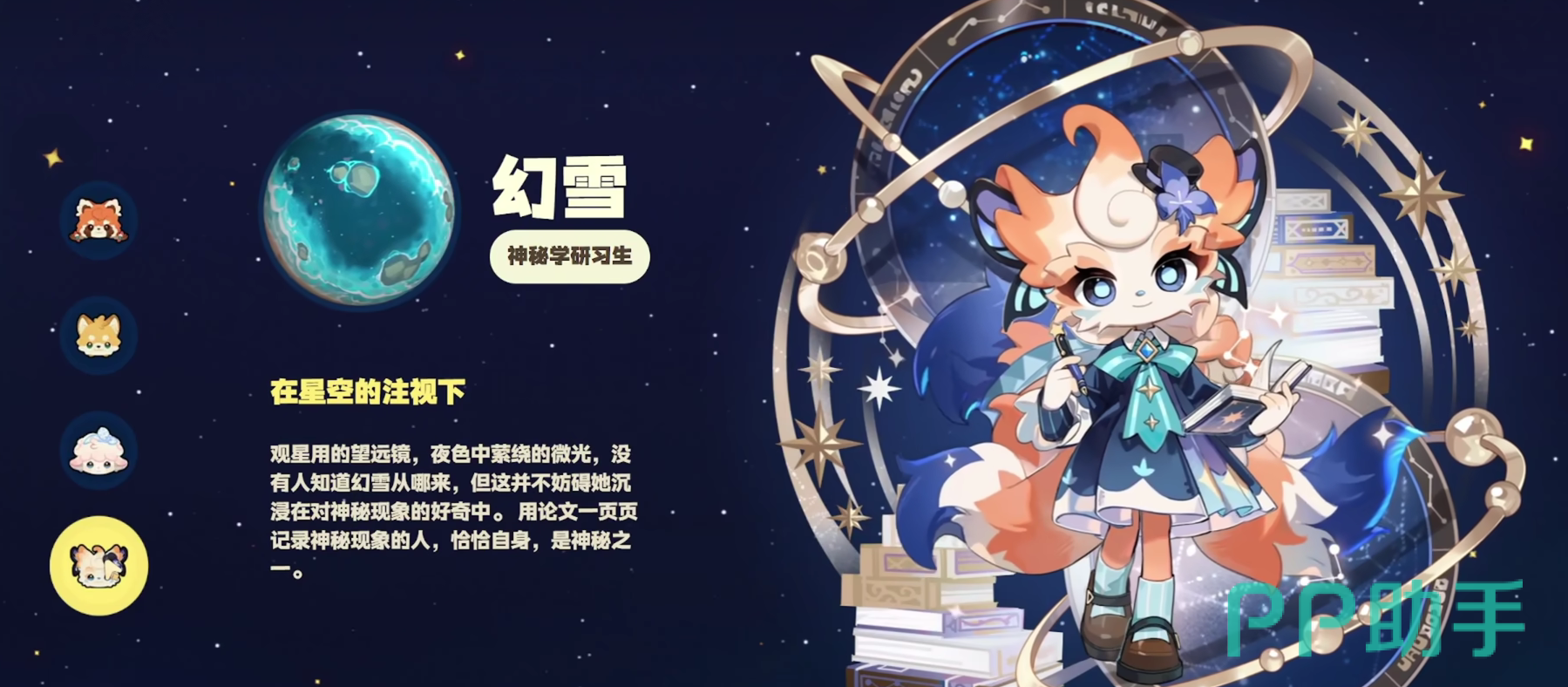 最后一位角色是幻雪,其原型为传说中的九尾狐,职业设定为神秘学研习生。她常在夜晚仰望星空,研究宇宙奥秘,与游戏中星际主题紧密相连。作为解答神秘现象的引导者,幻雪将在玩家遇到疑问时提供线索与指引,堪称游戏进程中的智慧导师,助力玩家揭开星布谷地背后的深层秘密。