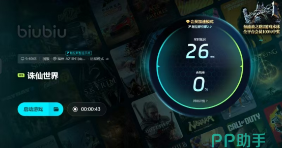在biubiu应用当中直接搜索诛仙世界,寻找到具体专区,点击立即加速,即可配合高速专网直线到达服务器。针对校园的弱网也有全面对抗模式,采用帕拉斯大数据预判技术,各类型弱网地带也有相当显著的效果。现在新用户下载获得三小时免费试用时长,新老用户使用【biubiu不卡顿】兑换码获得三天全平台免费福利。