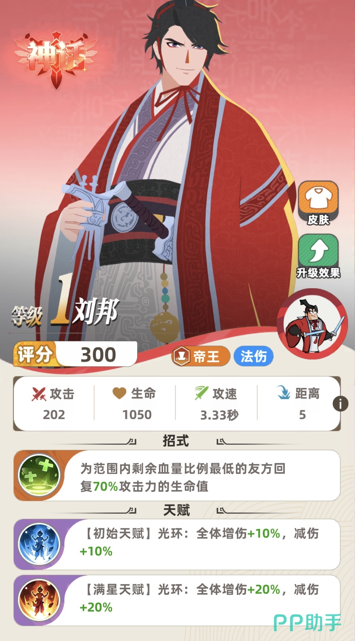 刘邦是零氪阵容构筑的基石型角色。其机制具备极高泛用性:升至9级后可适配任意职业体系,轻松激活双羁绊;同时提供全队范围减伤与持续回血效果,在前排承伤与后排保护两端实现双重价值。无需稀有碎片或高额抽卡成本,稳定产出保障了长期可用性。