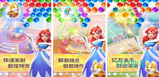色彩丰富的画面以及精心设计的关卡内容,每个关卡都有不同的要求和规格,都会给玩家带来全新的挑战,主要讲述的就是其中的艾莉公主,自己所生活的城堡因为各种原因变得非常黯淡,因此想要恢复城堡的往日辉煌,玩家可通过利用手指点击屏幕的方式快速发射,将炫酷的特效展现出来,还凭借强大的力量完成消除的任务。
