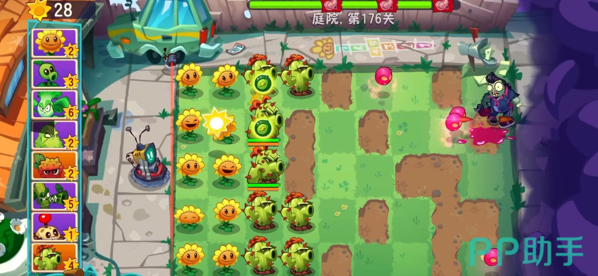 此外,也可选择与人参大师组成后排输出+前排续航体系。人参大师具备吸血与治疗能力,可为前排肉盾如黄金坚果提供持续回复,保障防线稳固;而仙人掌则在后方安心输出,形成攻守兼备的阵型结构。若遇到空中单位如气球僵尸,还可搭配三叶草使用,利用其吹飞机制清除浮空目标,再由仙人掌集中火力处理地面残敌,整体战术灵活性显著增强。