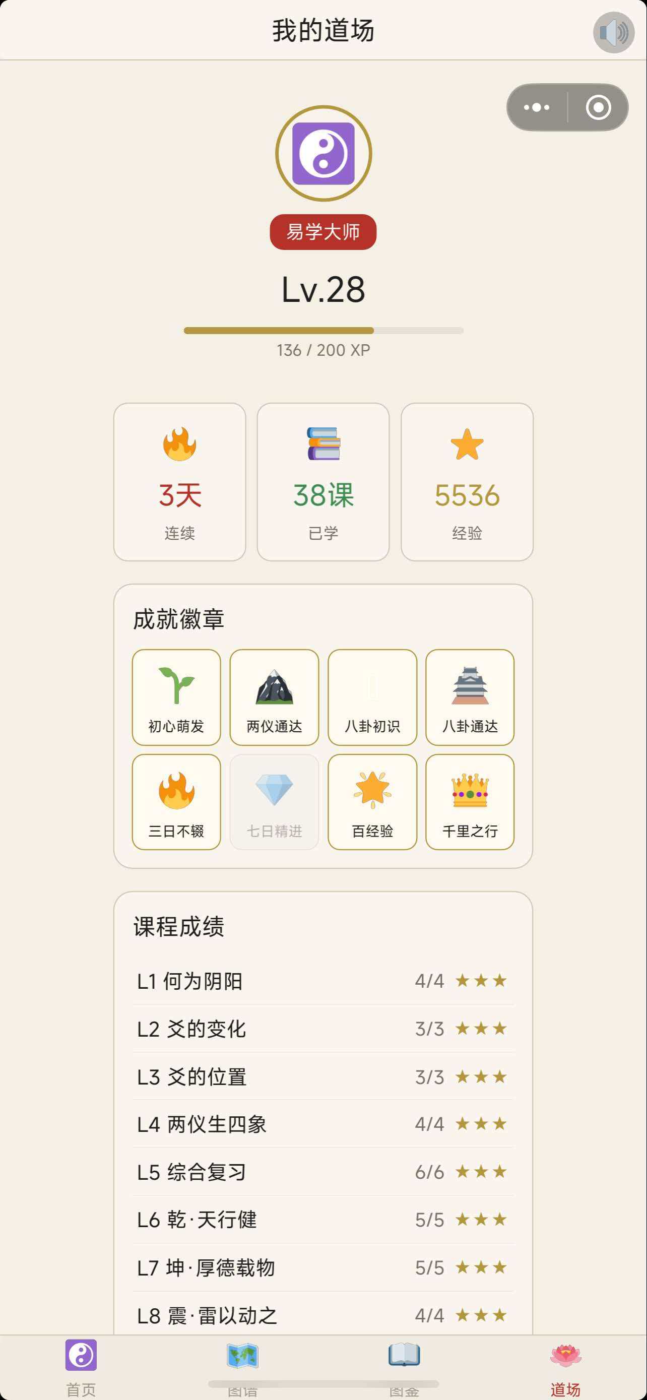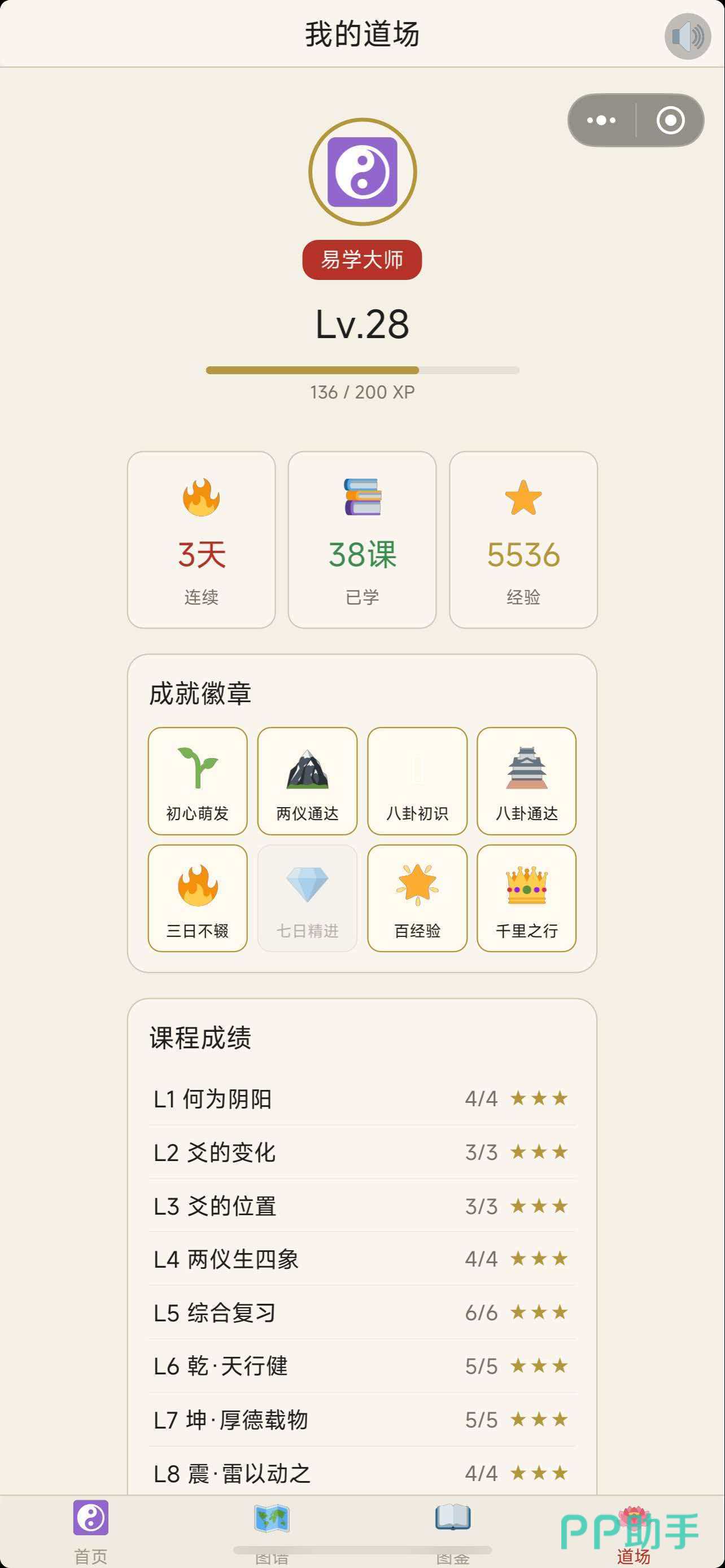 玩家角色成长严格对应知识掌握程度:从初识八卦符号,到熟练推演本卦与之卦,再到理解错综复杂的大衍之数运算逻辑,题目难度逐级递增,积分体系实时映射真实学习成果。每一次答题正确,不仅是数值提升,更是对“天行健,君子以自强不息”等原典精神的具象体认。