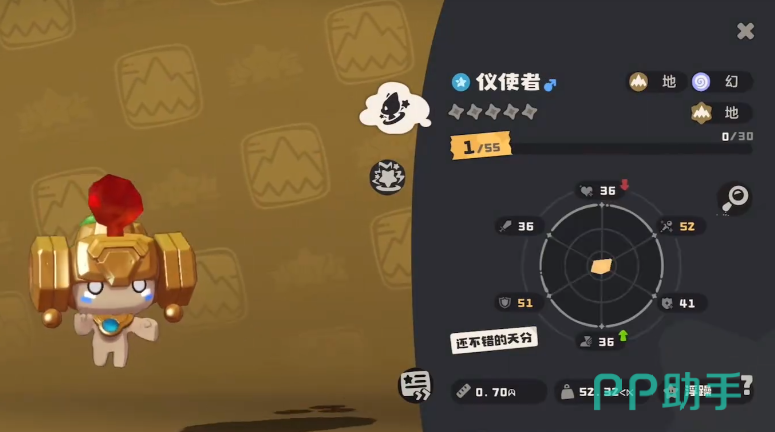 角色的魔法攻击和物理防御数值是比较优秀的,相对来说生命、物理攻击还有魔法防御会比较弱一些,在捕捉这个精灵之后需要不断的进行培养,每一次升级,角色的各项能力都会得到提升,虽然先天的各个数值并不高,但这是一个很有天分的精灵,在抓捕的时候建议手动抓捕。