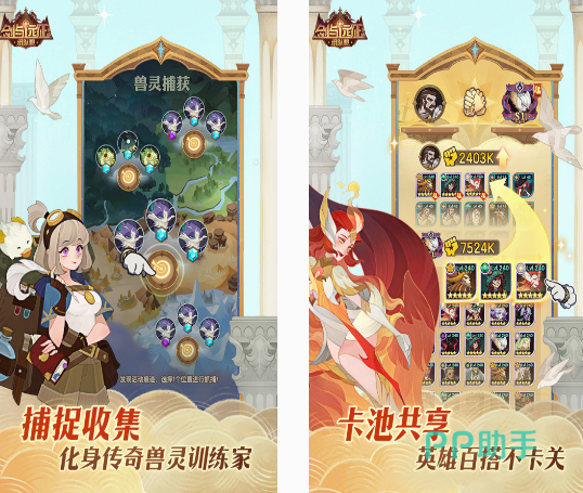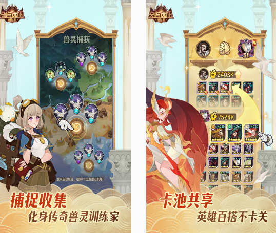 这款深受好评的卡牌游戏,不仅支持卡池共享,可帮助你通过不同英雄进行组合的方式,每次闯关的时候更顺利,也是随玩随停的手游。无论你是想要开荒或者是自由捕捉传奇灵兽等,都能通过非常简单的方式做到。在捕捉收集灵兽时,你将成为传奇的灵兽训练家,在完成捕捉以后,通过对其训练的方式能为自己所用。