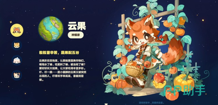 云果是星布谷地最早实装的可互动角色之一,以拟人化赤狐形象登场。其主视觉采用温暖橙色调,身着剪裁精巧的长裙,行动时蓬松尾巴呈现自然摆动的物理反馈效果。性格设定偏向内敛谨慎,在剧情中被明确赋予“植物学研究者”身份。当玩家解锁种植园功能后,她将成为关键引导者:不仅提供基础耕种教学,更会随亲密度提升逐步开放专属对话,分享诸如土壤湿度判断、季节作物轮作、稀有种子培育等实用技巧。对于侧重农场经营与生态建设的玩家路径而言,云果具有不可替代的系统性价值。
