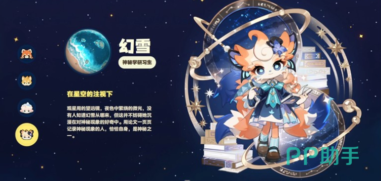 幻雪是目前信息密度最低但设定最具神秘色彩的角色。其形象融合九尾狐经典元素,尤其在尾部动态表现上强调毛发蓬松度与弧线张力。核心功能聚焦于“观星占卜”系统:玩家可在特定时间、天气与地图坐标条件下与其交互,触发临时增益效果(如幸运值提升、稀有掉落率浮动、事件触发概率调整)。她所使用的古语台词并非装饰性文本,而是与主线章节解锁、隐藏剧情分支存在直接映射关系,构成世界观解谜的重要线索节点。