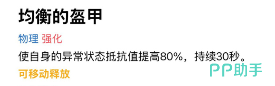 该技能可大幅提升剑星对异常状态的抗性,激活后能将异常抵抗能力提升80%,持续时间长达30秒。当技能被强化后,在效果持续期间,每次攻击都会引发一次范围爆炸伤害。此外,释放此技能时还能立即清除自身当前所中的一个异常状态,极大增强了战斗中的容错率。