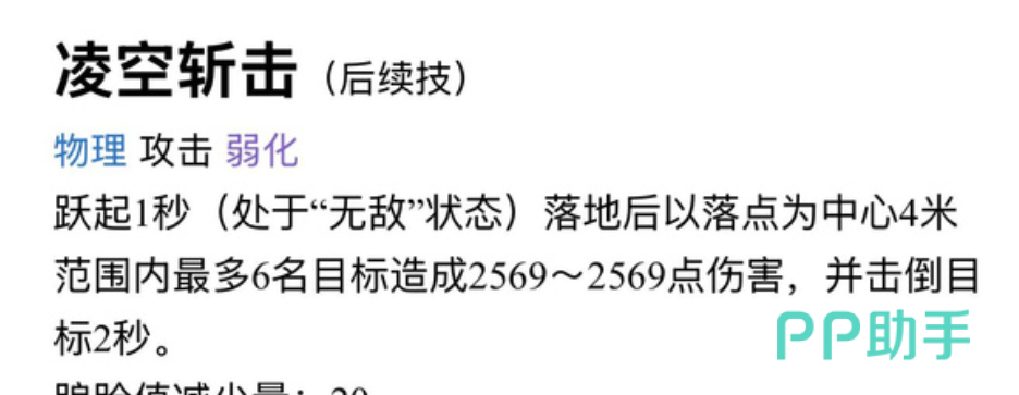 作为关键的终结技之一,剑星跃向空中并在1秒内处于无敌状态,落地时对周围4米内的敌人造成2569点高额伤害,并将其击倒2秒,适用于打断敌方技能或开启团战。