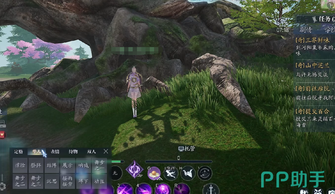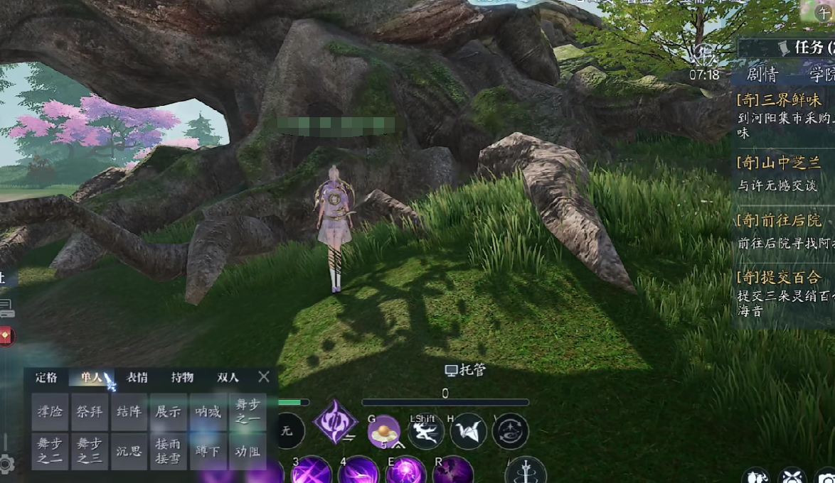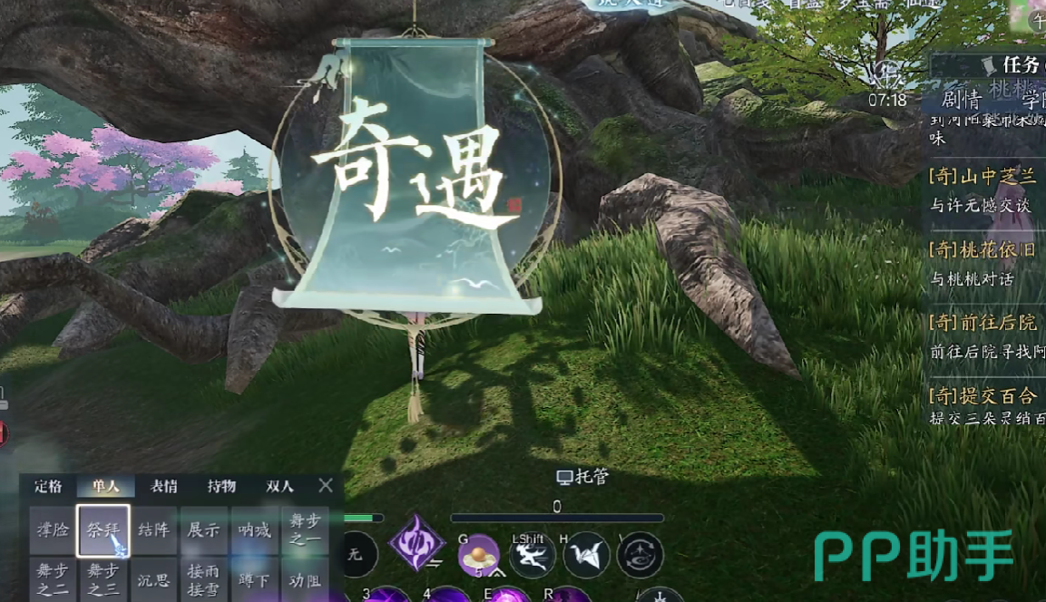 最后,在桃林的左上角位置,还有一处遗址是需要玩家进行关注的,在遗迹之中,玩家可以通过释放舞步的方式,来触发奇遇任务即可。