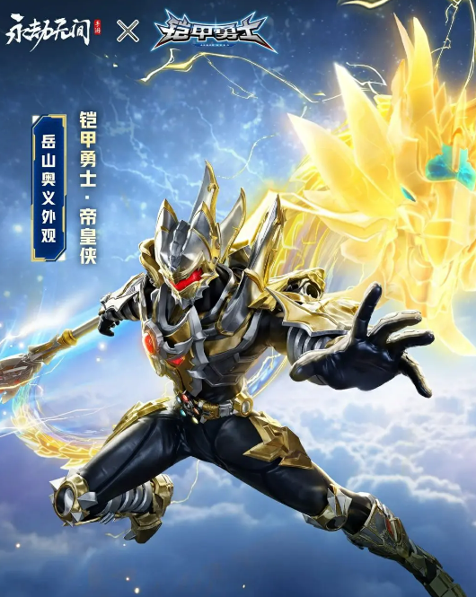 自9月11日起,《永劫无间》正式开启与“铠甲勇士”的跨界合作,为玩家们呈现一场融合情怀与战斗激情的特别体验。本次联动的核心角色——帝皇铠甲,将以岳山为载体强势登场。不仅还原了原作中的经典造型,更在技能特效与战斗表现上进行了深度定制,让每一位玩家都能亲身感受五行合一、光芒万丈的终极力量。