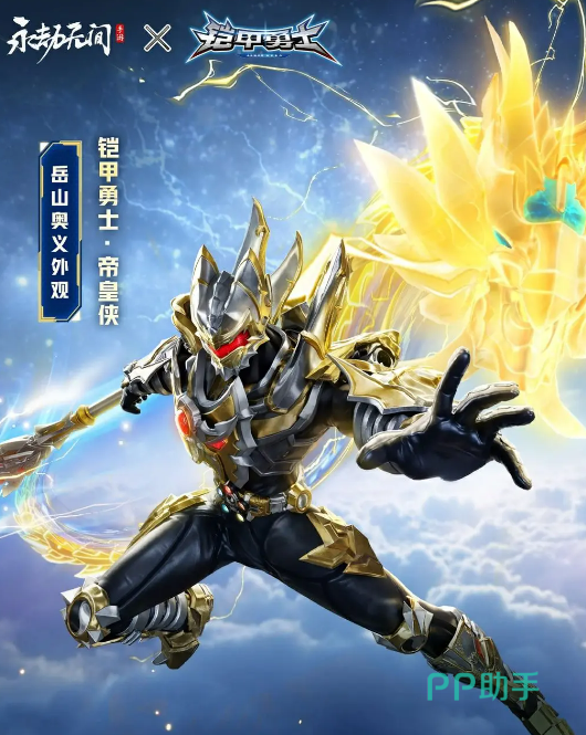 此次推出的“帝皇铠甲”主题外观,绝非普通的皮肤更换。从头盔到战靴,每一处细节都高度还原原作设定,搭配专属武器极光战戟,释放技能时伴随炫目的光影效果,仿佛真正唤醒了沉睡的守护者。特别是在触发“帝皇铠甲合体”动画时,金光迸发、天地共鸣的视觉震撼,令人瞬间回到当年守在电视机前等待变身的激动时刻。
