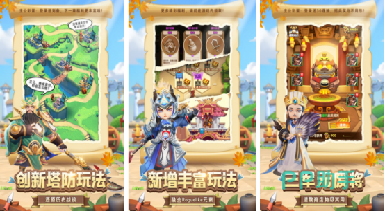 将战火纷飞的三国时期完美呈现出来,开局后您将会直接穿越到三国的古战场当中,这里有100多位三国的优秀名将,等待玩家随意操控,还可通过抽卡的方式感受独特的英雄魅力。这里也为玩家呈现出了独特的即时战斗模式,其中5v5公平战斗的方式,也是深受众多玩家的热爱和喜欢,玩家还能感受到浓浓的肉鸽元素,其中有过关斩将以及放置挂机等多种全新玩法。