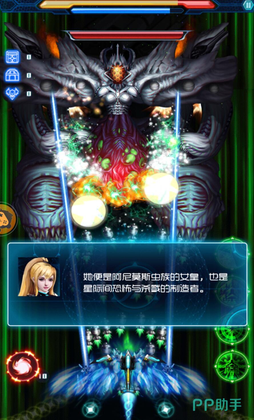 经典竖版弹幕射击游戏,玩家操控战机对抗虫族入侵,对战模式并非传统意义的对打,而是积分对战模式。战机分为激光型与导弹型,激光穿透多个目标,导弹自动追踪敌人。双人合作时可触发组合系统,两机重合发射全屏弹幕。而且还有最新的玩法引入——BOSS会分裂子机包围玩家。高难度模式下弹幕密度大幅提升,考验走位预判与炸弹释放时机。