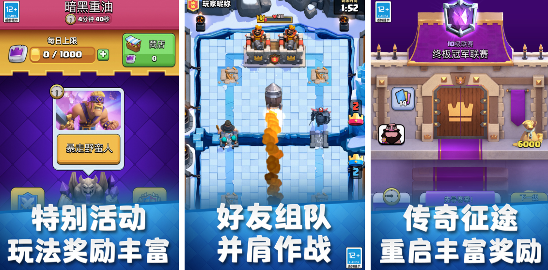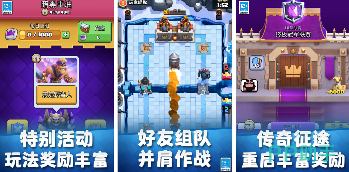 《部落冲突:皇室战争》将即时策略和卡牌元素结合在一起,其核心玩法就是部落与部落之间的战争。而你将扮演一方部落的首领,通过抽卡的方式来获得角色并战斗。游戏最大的特点就是时间短,每3分钟就可以完成一场对局,如果你想快速提升等级,还可以加入部落,与部落中的成员交流心得互赠卡牌。
