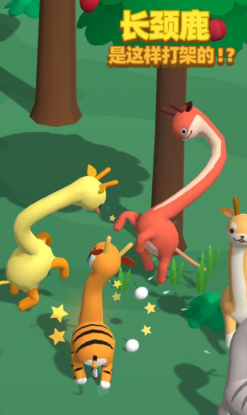 趣味对抗的魔性恶搞类手游核心玩法是操控长颈鹿用脖子进行摔跤比赛。玩家通过点击屏幕控制长颈鹿的头部摆动方向和力度,用长长的脖子撞击对手,目标是将对方撞倒在地或推出圆形赛场。特色在于搞笑物理效果,长颈鹿的脖子会像弹簧一样摆动,撞击时的反作用力可能导致自己失衡摔倒,双方纠缠时的动作充满喜剧效果。支持双人同屏对战,可选择不同体型的长颈鹿,赛场包含多种场景,角色表情生动,操作简单却充满策略。