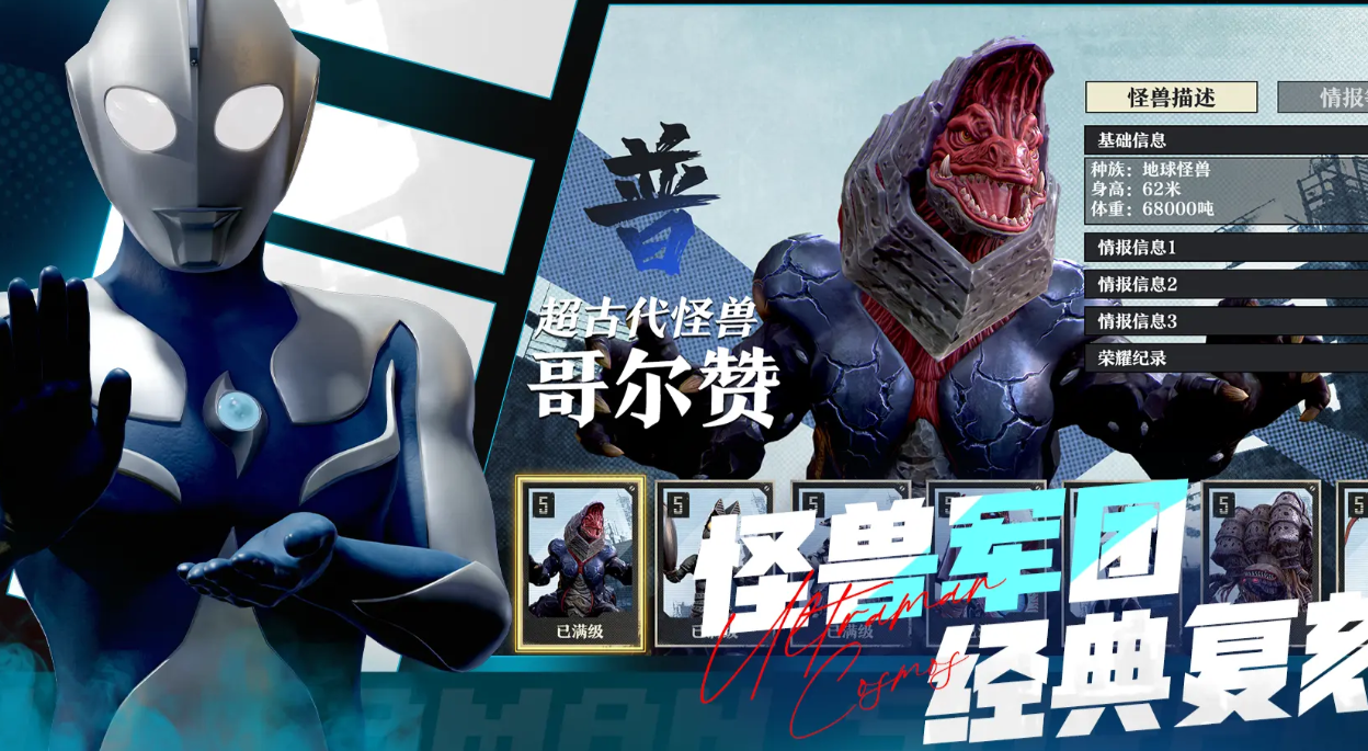 游戏当中的所有怪兽,都按照了原版特摄作品当中的设定,进行打造,例如超古代怪兽哥尔赞,作为地球的怪兽,它会在怪兽军团当中登场。