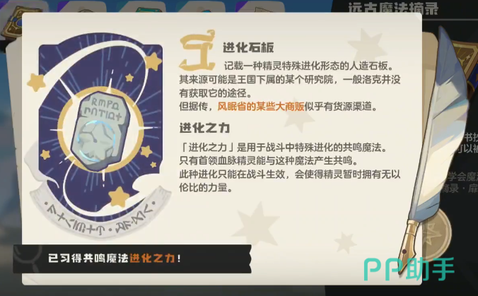 需要玩家注意的是,在上场战斗之前,需要把精灵背包里面原有的强化术,可以换成进化之力,只有这样在上场战斗的时候才能使用进化之力,然后加上首领血脉,可以让角色得到充分的进化,能从原有的白金独角兽,变成战斗力更强的彩虹独角兽。