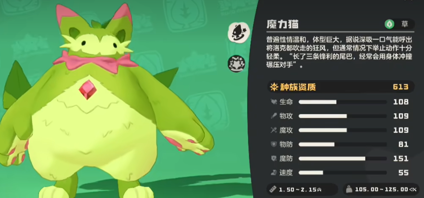 魔力猫炫彩版采用高对比度的红绿双色配比,整体视觉张力突出。其骑乘交互设计别具一格——并非常规坐背式,而是由精灵前肢环抱训练师身体进行移动,步频缓慢但动作诙谐,具备较强的角色辨识度与趣味性。该版本虽不适用于赶路场景,但在社交互动与个性化展示中表现亮眼。