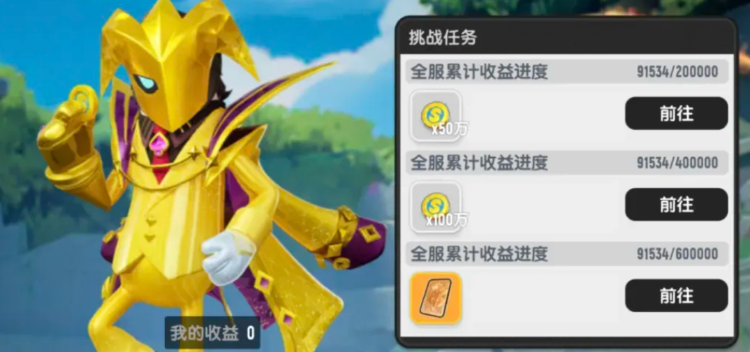 活动核心玩法围绕“摸金派对”展开:玩家每日参与该玩法所获收益将实时计入全服累计进度条。当总进度达成预设阈值,即解锁最终BOSS战“围攻至尊小丑”。成功通关后,全服玩家均可领取肠宝币、限定围攻主题道具等通用奖励。