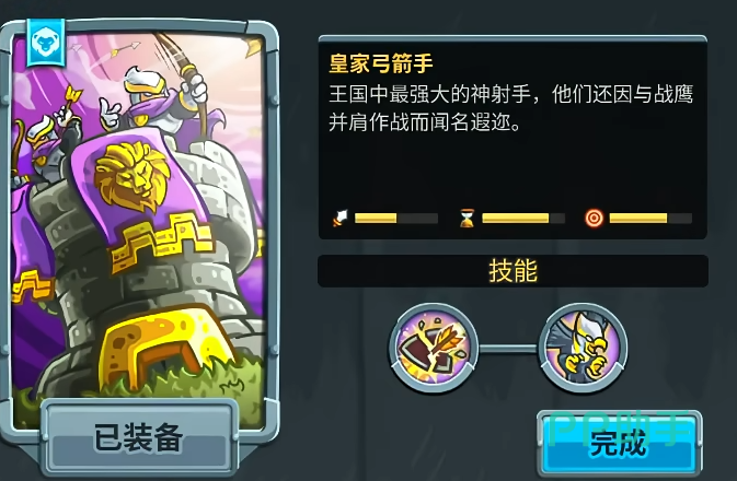 首推的是弓箭手塔,这是玩家在游戏初期即可解锁的基础远程单位,从第一关开始便可投入使用。尽管属性表现均衡,但在中后期依然具备不俗的输出能力。该塔建造成本较低,适合广泛布局。其第一个技能为“破甲射击”,可同时发射三支强化箭矢,每支造成约38点物理伤害,并无视目标20%的护甲值,对高防御单位尤为有效。第二个技能是“召唤战鹰”,可派遣一只空中单位协助攻击,虽单次伤害不高,但能有效干扰飞行敌人或补刀残血目标。