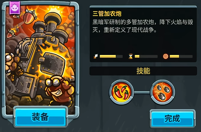 三管加农炮则是在第四关解锁的重要火力支援塔,拥有广阔的攻击范围和高额单体伤害,特别适合清理成群敌人。不过其攻击间隔较长,爆发频率受限。其主动技能之一是“红热炮管”,开启后炮弹落地会留下持续6秒的灼烧区域,对经过的敌人每秒造成12点真实伤害。另一技能为“急速齐射”,可在短时间内向大范围内倾泻多枚高伤炮弹,适用于应对密集波次或高血量目标。