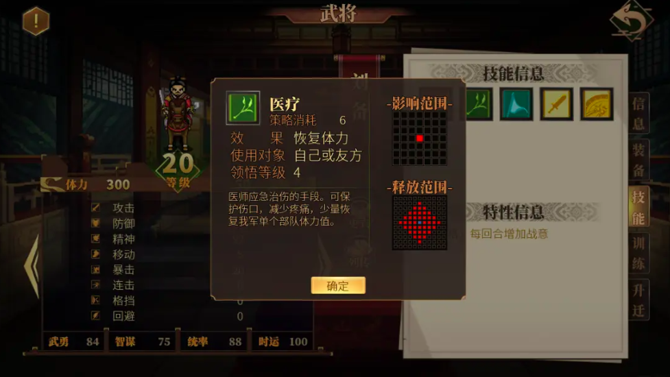 再者就是关于技能方面的问题,要想进行技能升级。不仅需要对策略进行消耗才能释放,并且还可以通过提升武将的领悟力,来完成技能的强大,提升技能的影响范围和释放范围。训练、升迁也是对兵种进行升级的好办法,通过对六大基本属性进行快速提升,即可对兵种进行养成,玩家通过挑战模式,就可以实现武将的等级提升了;升迁的话是通过兵种转职完成的,操作方法更为简单,玩家可根据当前合适的阵容搭配,进行转职方向的选择。