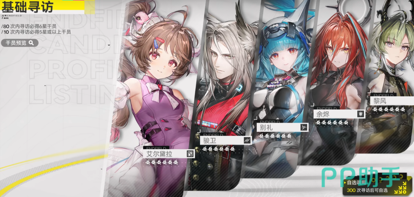主线任务完成后,玩家将正式进入“常驻基础寻访”阶段。该卡池永久开放,仅消耗“基础寻访凭证”(蓝票),每10张可进行一次十连抽。其概率机制如下:单次十连必得至少1名五星干员;累计20次寻访(即200抽)后,必定获得1名六星干员。所有可获得角色均属于常驻池范围,重复获取的角色将自动转化为对应角色的命座,用于解锁或强化天赋、技能等级等关键属性。