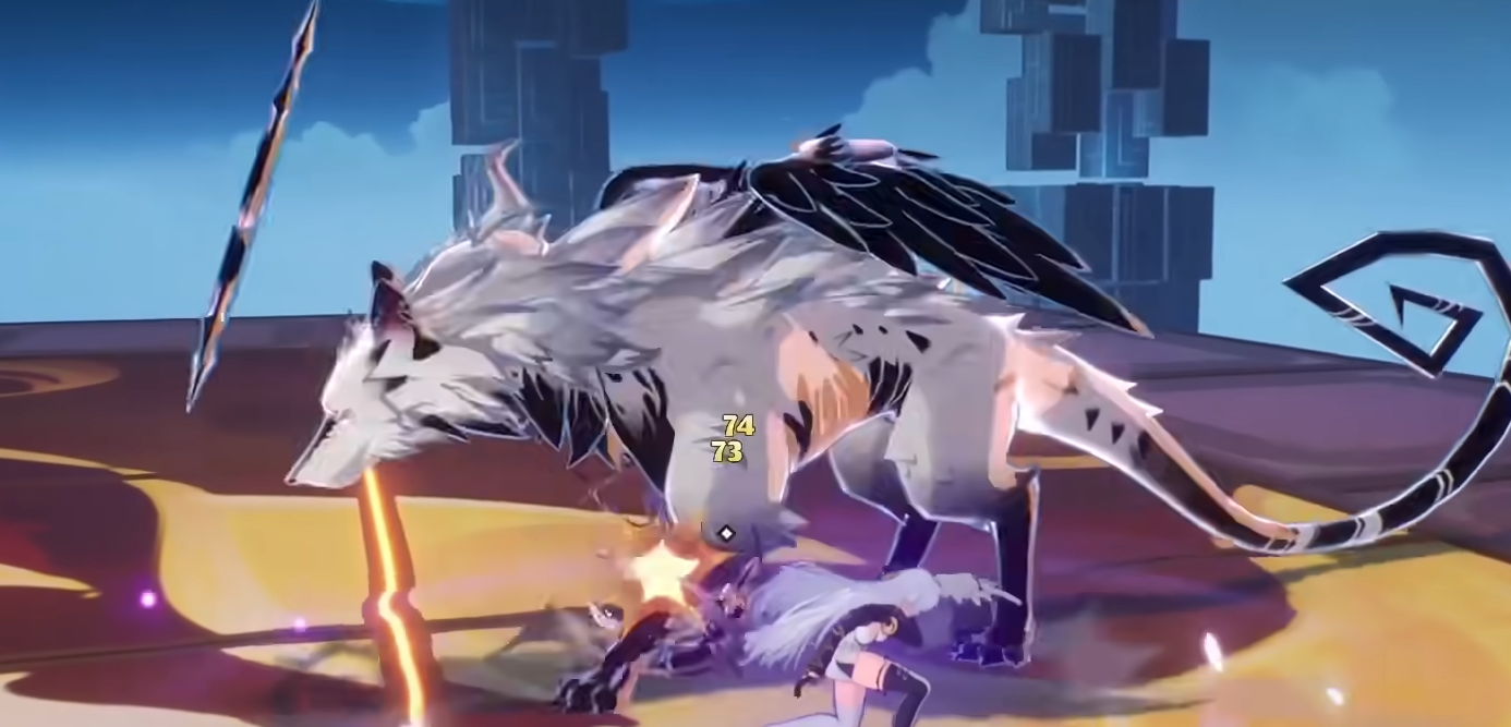 主动技能“空中指令”表现为跃击突进,以双翼完成前方斩击,释放即获取2层闪送之力;长按可进入蓄力阶段,提升技能倍率,并强制范围内所有敌人进入“满星追踪”状态。处于该状态的目标一旦对哈索尔发动主动攻击,将额外为其叠加3层闪送之力。