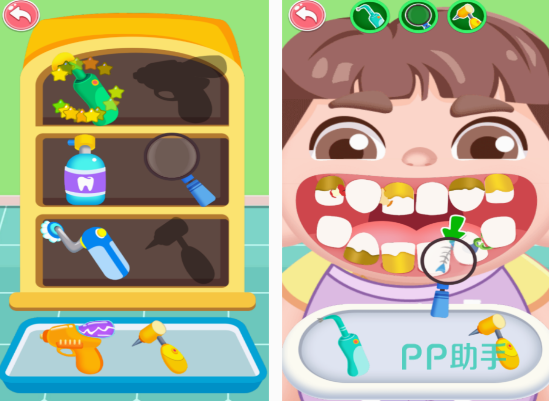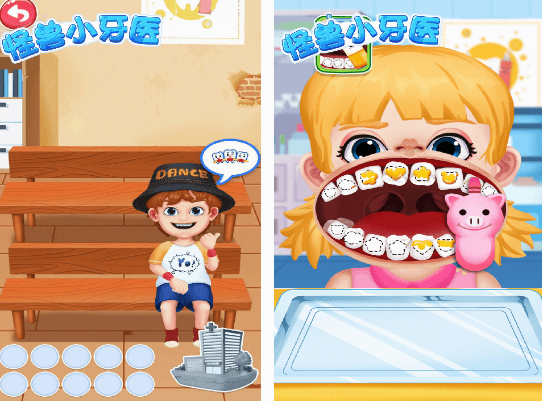 这款适合小宝宝又比较益智的游戏中,玩家将扮演可爱的牙医。经营牙医馆的过程中,会遇到很多的小朋友,在了解了每个小孩子所具备的牙齿问题以后,使用所具备的工具进行治疗,也能通过这样的游戏帮助孩子养成爱刷牙,饭后漱口等各种护理牙齿的习惯,知道在牙齿出现了问题以后,是一件非常危险的事情,但是如果牙齿真的出现了问题,也要及时治疗。