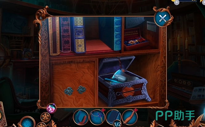 2、到达圣林,有好几个场景需要切换,第一个是街上的雕塑,在那里你可以找到锥子,记录碎片,书和软木。接着转到起居室留声机那里,用软木获得胶和书,用这本书,可以得到一个玩具。