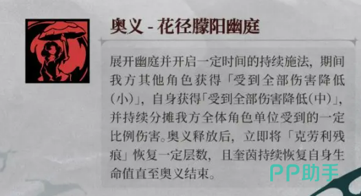 至于奎茵的奥义“花径朦阳幽庭”,则是她真正的亮点所在。释放后,她会在战场上制造一个持续的幽庭区域,期间,不仅奎茵自己能享受更强的伤害减免效果,其他队友的伤害也会被显著削减。此外,奎茵还会在奥义持续时间内恢复生命值,同时分摊队友所受到的伤害。这种既能抗伤害、又能治疗和分担伤害的能力,简直是为队友量身定制的守护者。