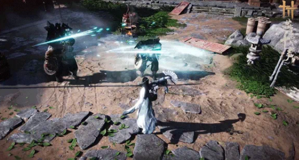 “杏游草野”则源自传统医道实践,相传水月先生于救治伤患过程中观气运、察脉息,悟得此扇法精要。该武学突出“变”与“速”二字:扇势转换迅捷无滞,攻防切换行云流水。依托折扇轻灵特性,构建高机动性战斗范式,风元素被深度融入技能机制——可生成定向风场驱散近敌,亦能构筑区域增益场提升队友持续作战能力。