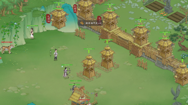 游戏里玩家最先体验到的就是,对于场景的建造,进入到山谷中之后,玩家需要带领村民在场景里,不断修筑房屋、建造农田同时还需要去养殖一些动物,关于这些建筑的布局是比较自由的,玩家可以随意决定具体的排布以及布局规划,除了这些基础的房屋之外还需要在游戏里修建城门和哨塔,这样才能抵御野兽的入侵。