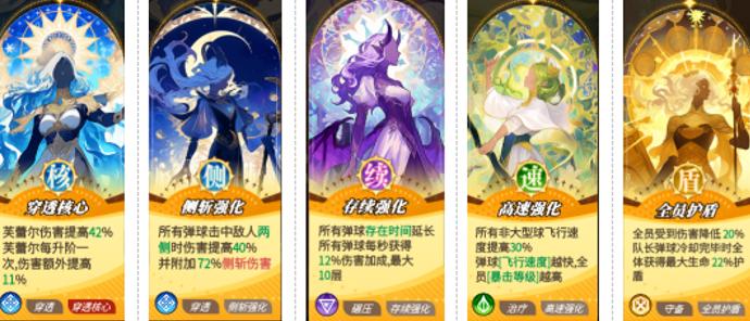鉴于输出高度集中于兰,祝福选择应聚焦两大方向:一是强化兰的单体伤害上限,二是提升全队持续作战能力。穿透系推荐“穿透核心”与“侧斩强化”,守备系适配“正面强化”(增强击退距离与护盾覆盖率),治疗系优选“高速强化”(提升弹球飞行速度,间接增加命中频次)与“边界强化”(直接提升弹球基础伤害),碾压系则建议选用“存续强化”,延长弹射持续时间,提高弹球总碰撞次数及全员增伤覆盖率。