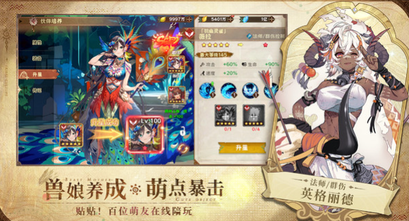 自然魔法和原始科技会激烈的碰撞,构建出一个充满奇幻大色彩的世界。这里会有超过百万字的剧情,围绕着五大部落的血脉封印展开。每一次的探索都可以发现文明碰撞的惊喜彩蛋,可以给大家呈现出一个立体的游戏生态。在抵达大陆之后,玩家将邂逅100以上的兽娘伙伴,这些兽娘独具特色,而且还会有双面萌点。例如少女在紧张时耳朵就会炸毛,狼族战士还会唱民谣。玩家就可以和他们一起亲密的互动,通过一系列操作就可以解锁私密故事,还有专属语音能感受沉浸式的互动养成。