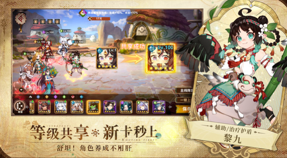 游戏的战斗系统主要是以轻操作为主,却又不失深度。在3×9的战场上,玩家就可以去灵活的布阵,然后运用七大不同的职业,可以搭配出50多种战术流派。包括毒烧流,还有科技流。玩家依靠站位还有时机的巧妙把握,就能有效实现战局的反转,可以真正的做到策略至上。对于策略的玩家而言也是一个主要的福音。游戏还会有独创的等级共享系统可以拒绝爆肝。玩家培养10名角色就可以让全员达到100级新的角色,也并不需要重新的练级,马上就可以继承养成进度成为主力的担当。