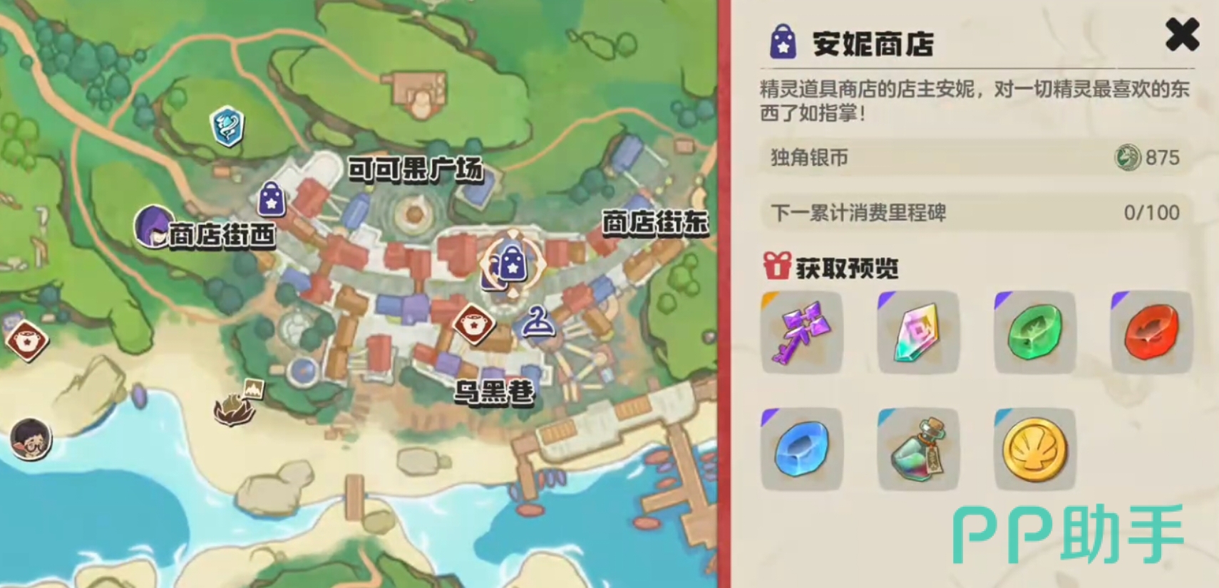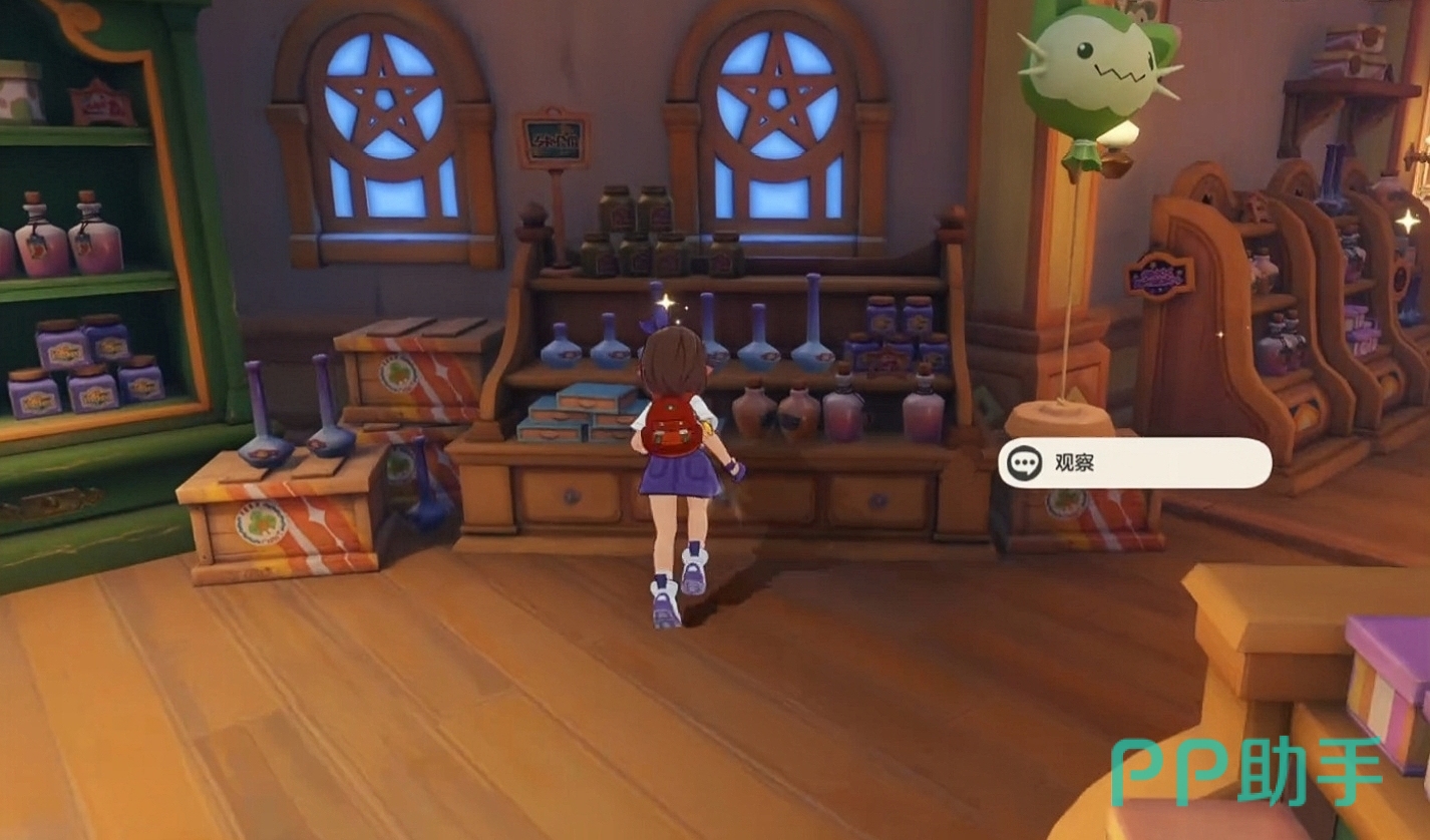 幻影巫秘境入口位于风眠省可可果街的安妮商店内。进入店铺后,需操作柜台上的玻璃瓶——将其按高度由低至高依次排列,完成后在交互选项中选择“第三个选项”,即可激活秘境传送门。成功进入后,玩家可获得以下固定奖励:小夜精灵蛋(孵化后为具备出众天赋的小夜)、80枚分光水晶(用于合成棱镜球)、4个损坏的国王球(可用于合成完整国王球)、150枚独角银币(丰眠省纪念商店通用货币)。此外,场景中还分布着1个华丽宝箱、1颗蓝色眠星及3枚游戏币。