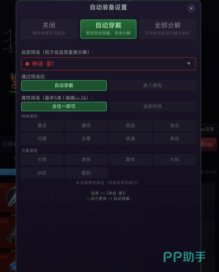 角色可装配总计12类装备栏位,涵盖武器、头盔、护甲等标准部位。所有装备均具备基础属性与随机附加特效,二者共同构成战力加成体系。装备品阶严格分级,高阶装备提供更显著的数值提升。所有品阶装备均可通过常规战斗掉落获取;玩家可通过提升“魂魄等级”来定向提高高阶装备掉落概率——随着魂魄等级上升,低阶装备将逐步退出掉落池,并同步开放更高品阶装备的获取权限。淘汰装备支持一键熔炼为金币,用于技能树与神符系统的持续强化。