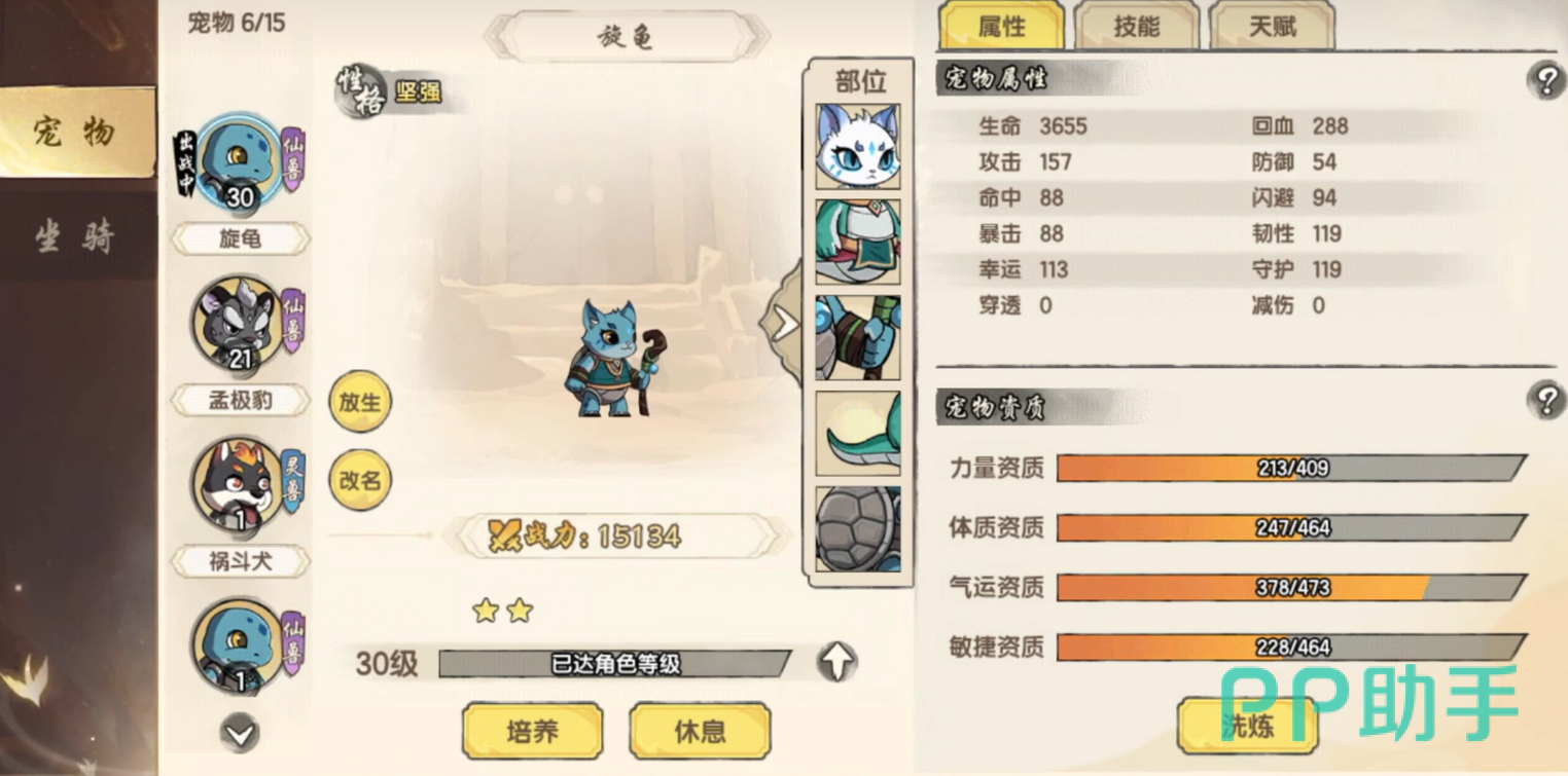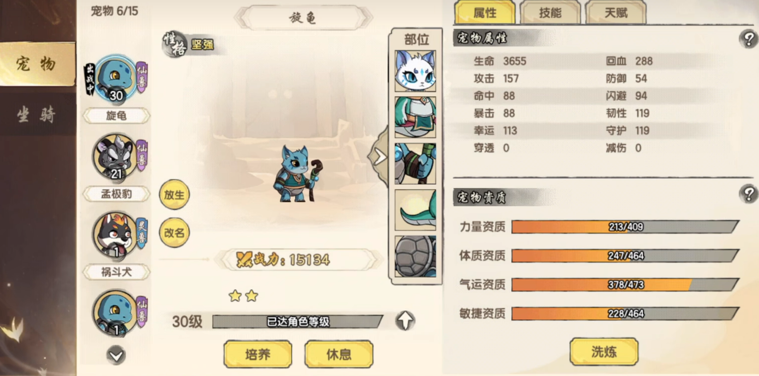 灵宠系统是早期战力放大器。森林区域开放即支持捕捉,使用天煞葫芦可进行捕获操作。宠物资质分为多档,开荒阶段务必筛选资质评级靠前的个体重点培养。其战斗中释放的辅助技能涵盖攻击加成、防御提升、敌方减速/眩晕等类型,需根据自身角色特性匹配功能型灵宠,显著降低战斗容错压力。