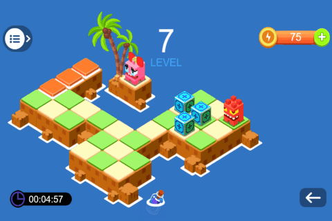 这是属于休闲益智类型的游戏,玩家需要自己思考,然后尽可能快的将小箱子推到指定的位置。然后在推箱子的时候,玩家需要合理的安排次序。游戏的画面非常的简单,而且还会有成就和排行榜,为了降低游戏的难度,大家也可以使用提示的功能,帮助自己顺利的过关,游戏里面会有很多的关卡,关卡的难度是越来越高的。