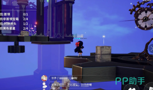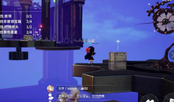 接着玩家需要操控角色,继续沿着齿轮上的道路不断向前,能在这里看到一个被挂起来的斧头钟表,在钟表附近能看到第三个木箱,然后沿着这个钟表继续向前,就能看到第三个星星,接着在附近角落里会有第4个木箱,4个星星在齿轮环道的终点,这里首先玩家会遇到一个boss,需要先和对方战斗,在击败对方之后能看到有一个齿轮,齿轮这里会有星星,在齿轮的正上方也会有一个隐藏的宝箱。