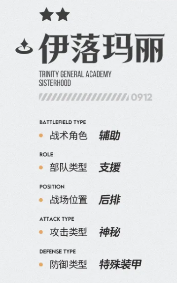 从战斗定位来看,伊落玛丽属于后排支援型角色,攻击属性为神秘,防御类型归属特殊装甲。虽然基础配置看似偏向传统辅助,但她的机制设计远超常规奶妈范畴,强调的是战局节奏调控与生存韧性构建。